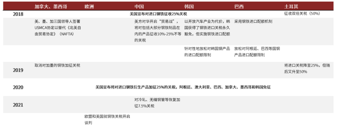 但短期内,美国贸易政策短时间内可能难以出现较大转向,在贸易壁垒之下,海外钢材对供需缺口的补充可能比较有限。自2018年3月特朗普政府宣布对进口钢材实施25%关税以来,美国的钢铁进口与对外依存度皆逐年下降。目前,除同属USMCA协议的加拿大与墨西哥不受进口关税限制外,韩国、巴西和阿根廷也被豁免于钢铝232条款所规定的25%的钢铁关税。但来自这三个国家的进口钢材被施以每季度50万吨的配额,数量相对有限。
