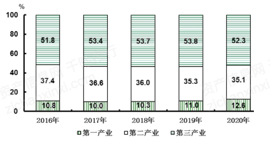 图3: 2016—2020年三次产业增加值占地区生产总值比重