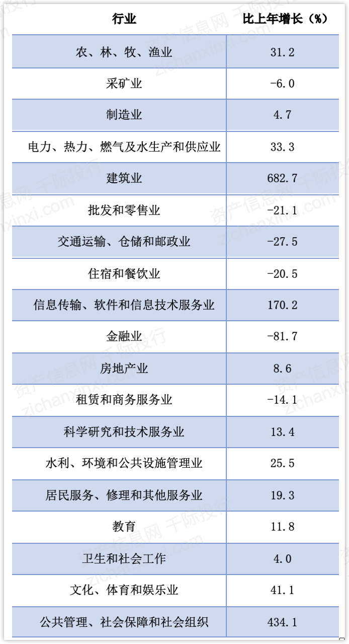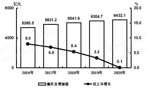 全年批发和零售业增加值733.49亿元,比上年下降4.3%;交通运输、仓储和邮政业增加值582.11亿元,增长0.4%;住宿和餐饮业增加值159.98亿元,下降18.7%;金融业增加值901.24亿元,增长5.5%;房地产业增加值809.37亿元,下降1.6%;信息传输、软件和信息技术服务业增加值509.31亿元,增长13.7%;租赁和商务服务业增加值115.00亿元,下降20.0%。