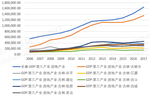 从数据来看,长春市属于整个吉林省内房地产业最发达的区域,其房地产业GDP占全省房地产业GDP高达32%,某种程度也反映出其人口密集程度相对较高,地区经济相对比较发达,可能是较好的投资方向。