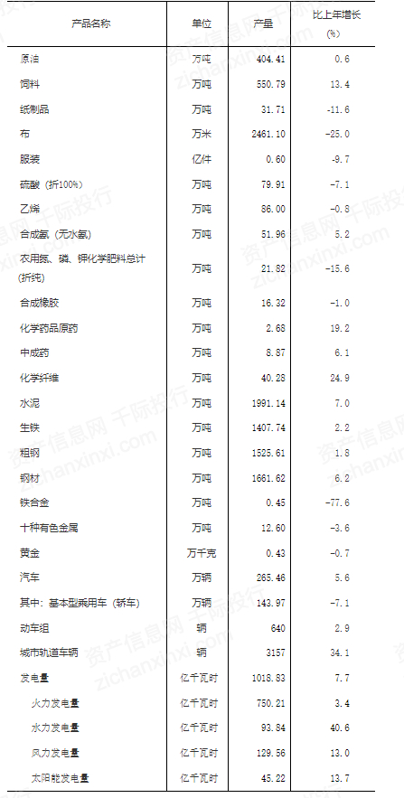 全年规模以上工业中,重点产业增加值比上年增长8.2%,六大高耗能行业增加值增长4.9%,高技术制造业增加值增长5.6%,装备制造业增加值增长8.4%。
