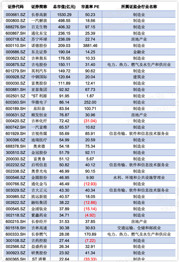 表5:吉林2021上市公司企业名录(按市值降序排)