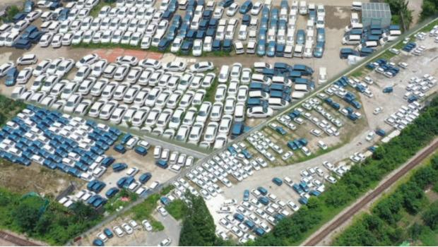 杭州郊外:数千辆新能源网约车全废了?!有人却说:洗掉锈迹马上能上路……