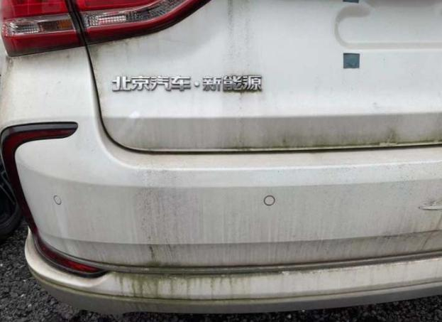 相比前一个停车场,这里的车型稍微高档一些,有北汽EU5、哪吒、荣威、吉利等车型,续航400-500公里,但车况也不如人意,生锈的,发霉的,长了青苔的比比皆是。