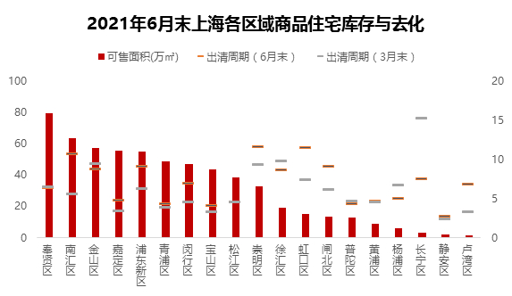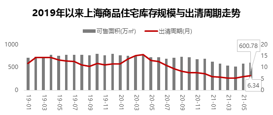截止6月末,上海全市商品住宅可售面积为600.78平米,较去年同期下降16.2%。商品住宅的出清周期为6.34个月,短期库存紧张,去化压力较小。在新房放量集中供应下,第二季度库存有所增加,出清周期小幅上升,房源紧缺的情况得到缓和。