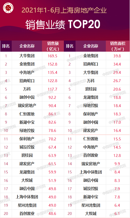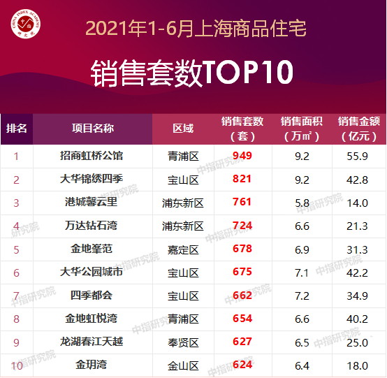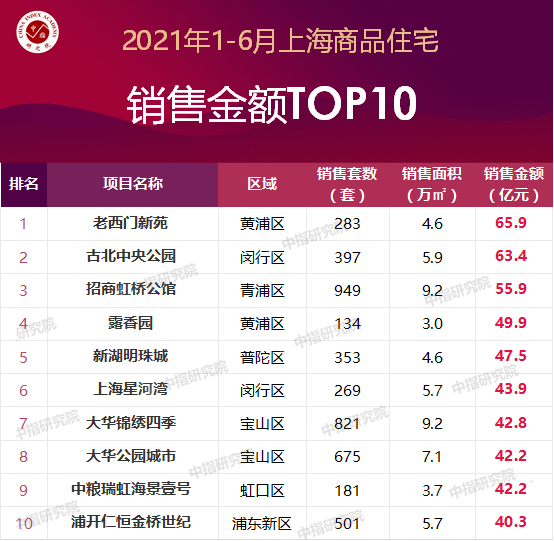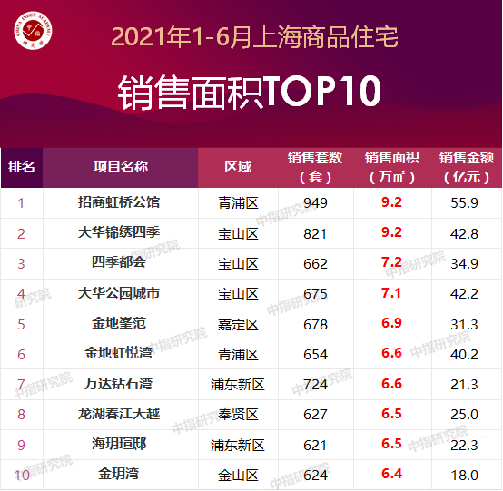 特别说明:房地产企业销售数据统计与项目销售数据统计均是以2021年1月1日-6月30日期间商品房合同销售额为统计口径,主要依据CREIS中指数据在上海的销售监测数据;本报告仅供参考,课题组不对使用报告及其内容所引发的任何直接或间接损失承担责任。