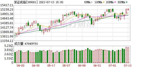 7月13日,A股三大指数小幅低开后走势分化,上证指数、深证成指双双上涨。据数据显示,截至收盘,上证指数涨0.53%,报3566.52点;深证成指涨0.18%,报15189.29点;创业板指跌0.56%,报3514.98点。两市成交额收盘时达12202亿元,为连续第九个交易日突破1万亿元。