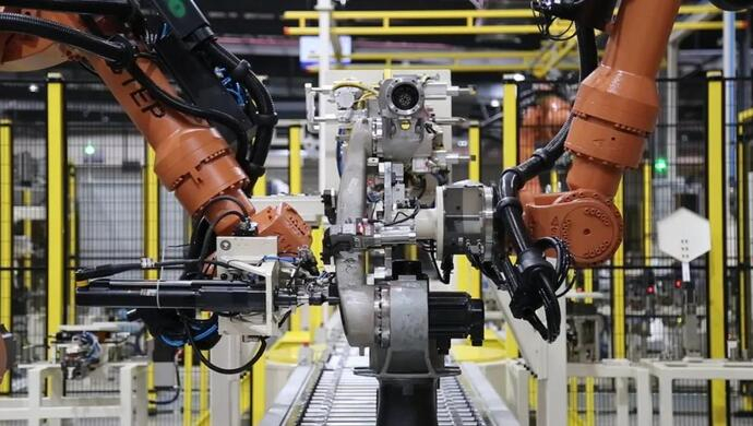 工厂里,机器人在厂房自动完成零件装配、物料运输、精密焊接等工作,2万平方米的厂房只需5名工人负责看线即可;