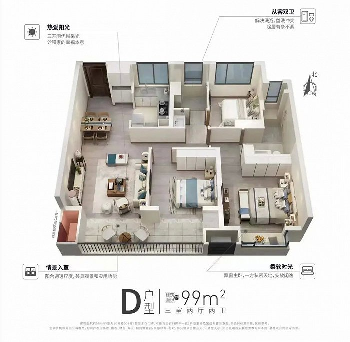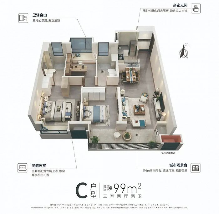 本次加推的三号楼户型,其中12、16号楼中间户为建筑面积约105㎡三房两厅两卫,东西边户为建筑面积约127㎡三房两厅两卫;15号楼则全部为建筑面积约176㎡的四房两厅三卫。