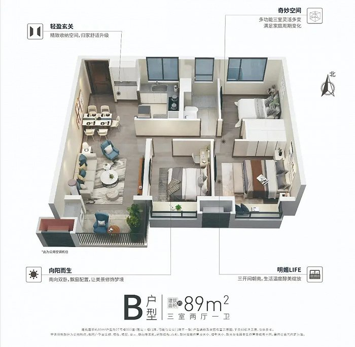 105㎡三房两厅两卫