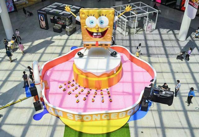 海绵宝宝动画IP主题展将一直持续到8月15日,设有五大展览游玩区域。其中,位于中庭的“沙堡大战”区,有一个巨大的海绵宝宝张开双臂,很多粉丝在此拍照。海绵宝宝脚下是沙池,小朋友可以进去挖沙,寻找金币。在“派大星寻宝记”区,可以看到派大星“开怀大笑”,等着和朋友一起享受愉快的海洋球沙滩“按摩”。另外,这里还有“海绵宝宝2021号”海盗船,人气极高。“欢乐沙滩”区更具挑战性,可以体验障碍跑道、滑梯等,最终到达“海绵宝宝专属大道”,与海绵宝宝一起野餐,在菠萝屋享受假日时光。