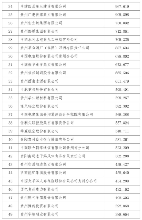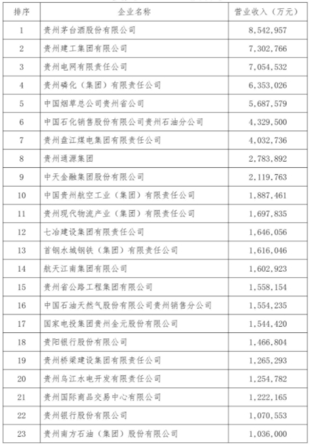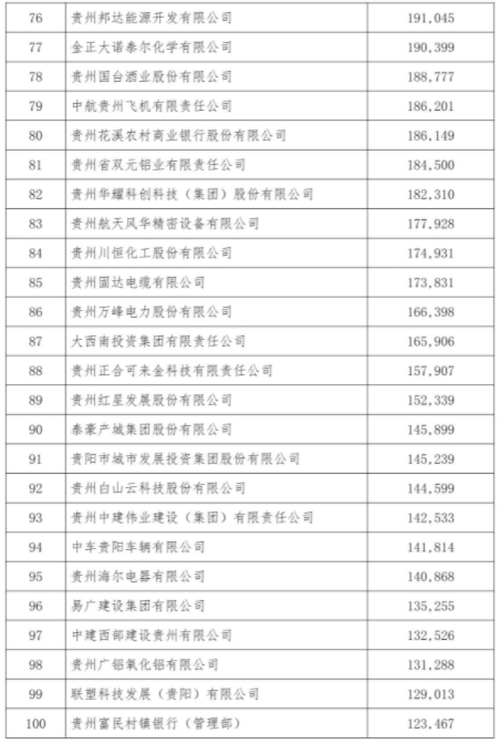 图12-16 2020贵州省百强企业名单