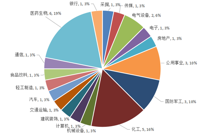 图15:贵州上市公司成分行业分布(按上市公司数量分类)