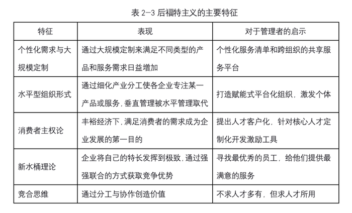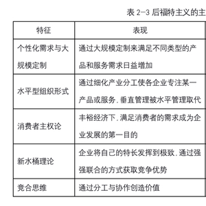 后福特主义的主要特征,如表2-3所示。