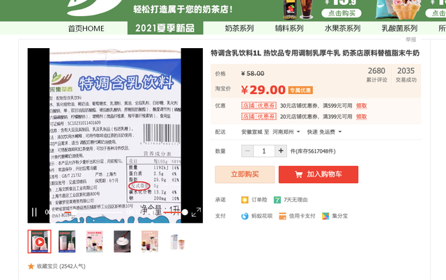 1升“特奶”价格不到30元,商家示范视频里只需要70克,再加上不同辅料,就能制成一杯好喝的牛乳茶。