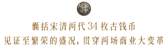这套就收录进20枚北宋铜钱和14枚清朝铜币,见证了这两个朝代的经济文化盛况与世界风云变幻。