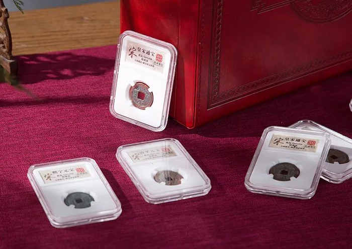 34枚宋清古币,每一枚都被单独保存在盒子中,减缓岁月侵蚀,能更好地传给后代。