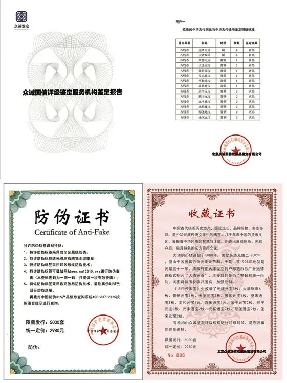 每一套皆附上防伪证书、收藏证书、鉴定报告等等,永久保真,喜欢的朋友可放心入手。