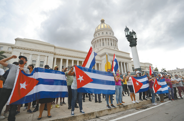 “现在古巴局势正常,古巴政府在共产党领导下,继续行使其在国内的行政职能。”古巴驻华大使馆13日在发给《环球时报》的声明中说,11日古巴的若干地点发生动乱,目的在于引发古巴全国范围内的大规模社会暴动,但大多数古巴人自发支持古巴革命及其领导,没有让此阴谋得逞。古巴共产党中央委员会机关报、古巴第一大报《格拉玛报》网站刊发题为“平静的古巴诉说挫败的小冲突”的视频和图片,称古巴的街道在新一周醒来时并没有像冲突策划者和执行者所希望的那样,因上周日的抗议骚乱而“沸腾”。