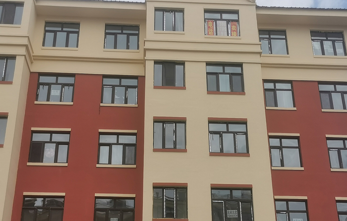 证券时报·e公司记者注意到,在多栋6层楼房的顶楼窗户上,均用醒目的红底黄字写着“卖楼”的字样,且所留联系电话均为同一个号码,并直接写明价格1.2万元。“这些房源的确都是我的,分为51㎡和56㎡两个户型,售价分别是1.2万元和1.4万元,均包含600元的物业押金。”房主在电话中介绍说,“现在还不能更名过户,但是可以签购房协议,只要你买完之后不拖欠物业费、采暖费,那么4、5年之后我们负责帮助更名。”