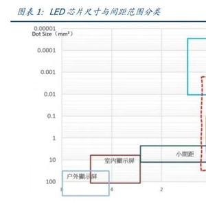 Mini LED :100~300 微米,芯片间距在 0.1~1mm,采用 SMD、COB 或 IMD 封装。Micro