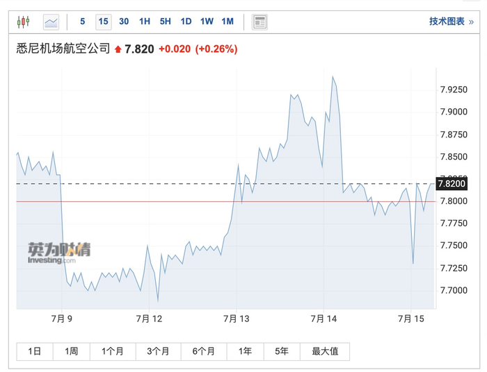 悉尼机场股价周四早盘处于7.82澳元,周三收于7.8澳元,因投资者对董事会未来是否会接受收购提议不确定。