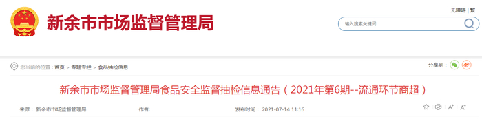 新余市市场监管局特别提醒消费者,如购买或在市场上发现不合格食品,请拨打食品安全投诉举报电话12315进行投诉举报。