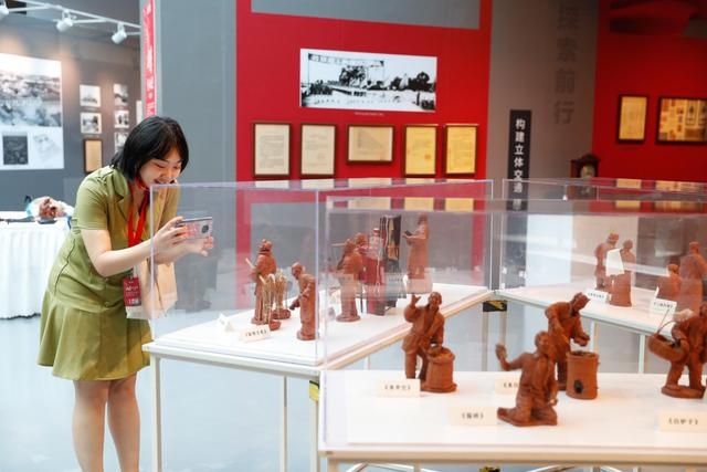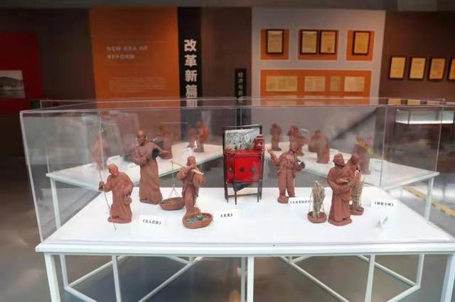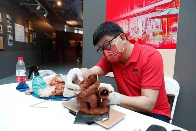 7月14日,北京工艺美术大师、北京奇灵文化创意总监吴德寅现场展示了老北京风情泥塑的创作。吴德寅创作了几百个“360行”的泥塑作品,挑选了20余个泥塑参与本次展览。他说:“配合《档案见证北京》的展览,我通过泥塑的形式把曾经出现在北京的“行当”展现出来,这样不仅有图片、有文字,也有泥塑这种非常直观的体现,比如说有天桥人物、走街串巷的生意人等等。”