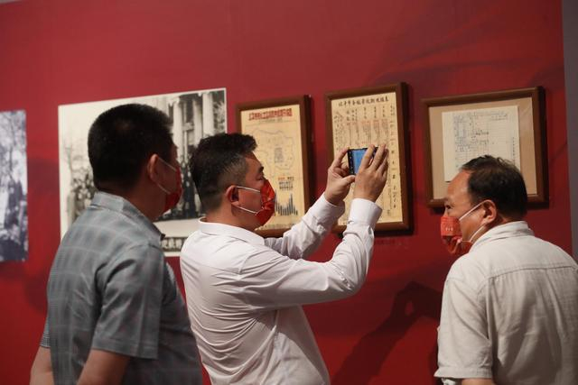 7月14日虽然是上班日,但展厅里依然陆续有观众进来参观,在望京生活了6年的居民宋先生便是观众之一。宋先生看展非常仔细,每一段文字、每一张图都要凑近看一看,有时还要拿出手机对着展品拍张照。