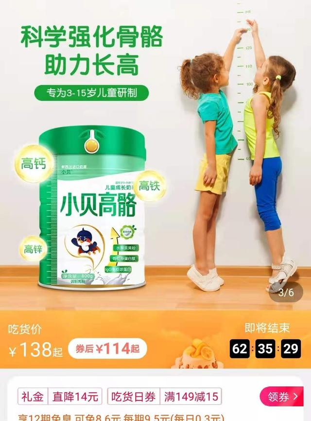 不过在业内人士看来,“高骼”与“小贝高骼”都是长高奶粉的代表。在电商平台搜索“长高奶粉”,可以看到高骼,小贝高骼,人之初“醒骼”,南山“倍贝高”“高益捷”“比尼高”,宜品“臻高”“长高高”,羊羊100“贝睿高”,成吉思汗金丝猴乳业“美骼高”,海伦兴安岭乳业“喜贝高”等多个品牌,其中多数产品有“长高”或“高个子”等宣传字眼。