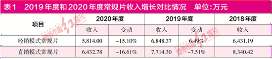 但在该背景下,其扩产常规片行为令人疑惑。根据招股书披露的数据,2019年度,经销模式和直销模式下常规片收入增幅分别为6.49%和-7.51%,2020年度则分别为-15.10%和-16.61%。显然,其经销模式及直销模式下,常规片收入在不断减少。