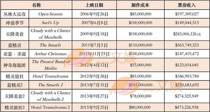 索尼影视动画公司(Sony Pictures Animation),隶属于索尼公司的动画电影制作公司。代表作品《精灵旅社》系列,与漫威娱乐等公司联合出品的动画《蜘蛛侠:平行宇宙》。