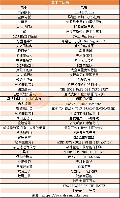 梦工厂动画,好莱坞主要动画工作室之一。梦工厂制作了大约40部电影,其中大部分是cgi,全球总票房超过150亿美元,包括怪物史莱克系列和马达加斯加系列在内。它还制作了许多系列片和几十部短片。