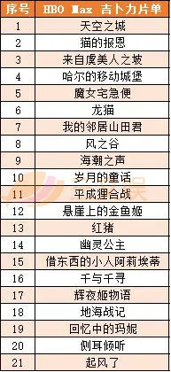 同年10月,HBO Max买下了日本动画工作室吉卜力21部作品北美独家播映权,其中包括《天空之城》、《魔女宅急便》、《幽灵公主》、《千与千寻》、《哈尔的移动城堡》、《龙猫》等知名作品。