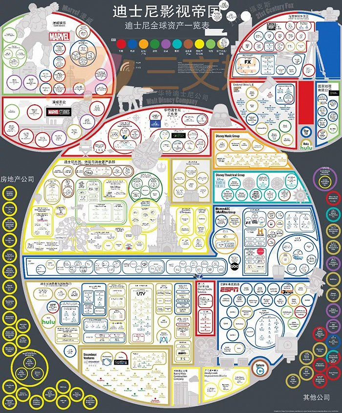 至此,在收购漫威、皮克斯、卢卡斯影业之后,迪士尼再次更新了名下所拥有的产业、公司、IP。