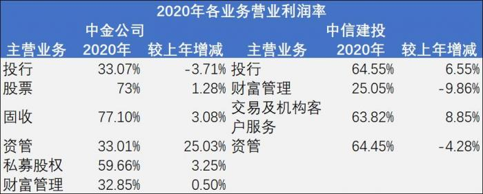 但是,分析人员们却未对中信建投的财富管理业务发展抱有多大的预期。2020年,中信建投的财富管理业务利润率较上年下降9.86%,是所有主要业务中盈利能力下滑最大的业务分支。