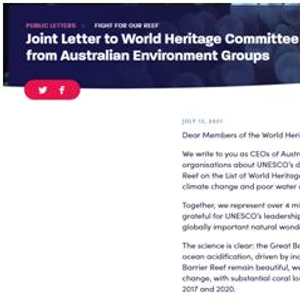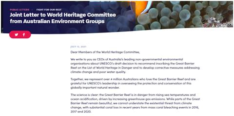 澳保护基金、澳土著青年气候网络等10个非政府组织向世界遗产委员会联名发出信函,对有关建议表示支持