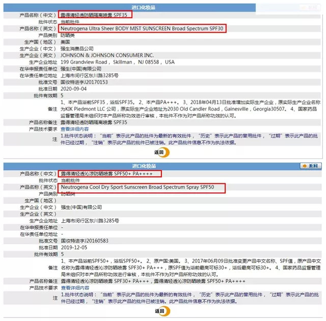 根据国家药监局备案信息查询显示,截至目前,露得清共有3款防晒喷雾在中国市场获得了备案,分别是露得清清透防晒喷雾SPF30(国妆特进字J20090097,批件已过期)、露得清轻透沁凉防晒喷雾SPF50 PA++++(国妆特进字J20160583)和露得清轻透防晒隔离喷雾SPF35(国妆特进字J20170153)。