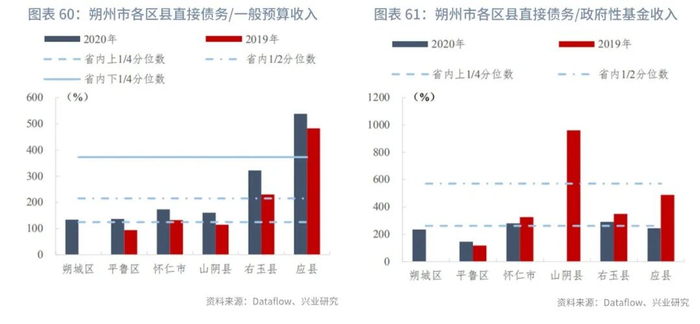 我们用政府直接债务/一般预算收入、政府直接债务/政府性基金收入两个指标观察山西省区县的政府直接债务负担变化。