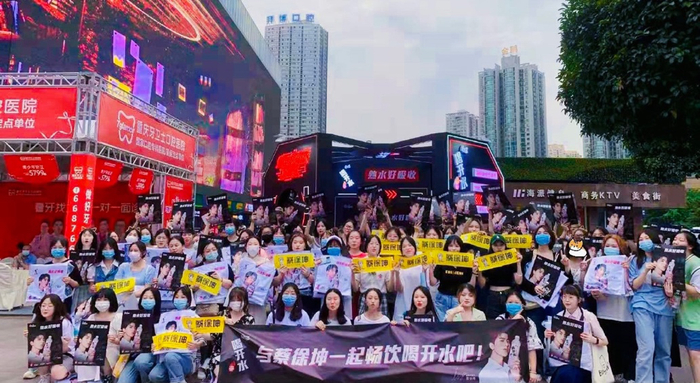 手握一瓶喝开水,就是流动的号召力。它拉近了无数粉丝与idol的距离,即使不能亲临现场,也能感受到idol的温度,想象着自己在现场为idol呐喊的样子。
