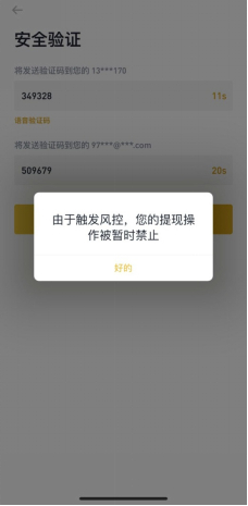 据该投资者介绍,当自己每次点击提现时,该交易平台会出现“由于触发风控,您的提现操作被暂时禁止”的提示,从而导致名下资产无法提现。
