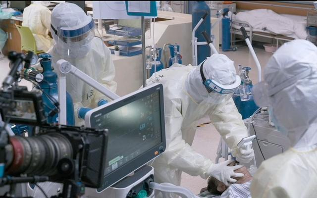 “所有仪器设备全部调试好之后,还要让演员学会用,看得懂呼吸机、透析机屏幕上面的各种数字代表什么意思,然后还要会操作,该怎么去选,怎么去操作是最符合医生的行为习惯的。这种难度很大,甚至在拍摄的时候,演员还在不停的学习。难度太大的时候,导演想了个办法,拍一个动作停一下,然后再拍一个动作,最后剪辑出来。”