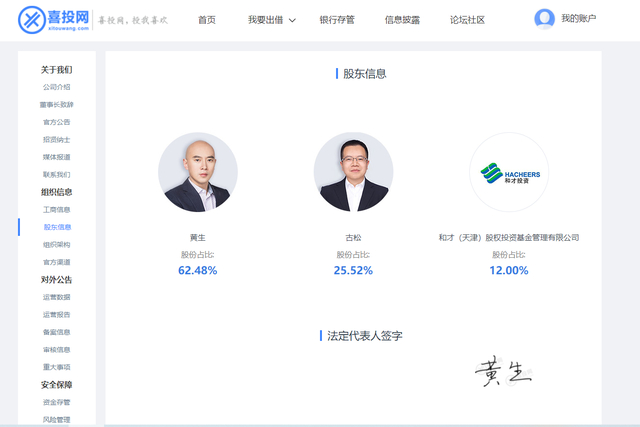 喜投网官网显示,黄生以62.48%的股份占比成为该公司的第一大股东,同时担任公司的法定代表人;企查查显示,喜投网的疑似实际控制人亦为黄生。而事实上,黄生等人在被正式抓捕之前,已被深圳警方边控、限制出境。