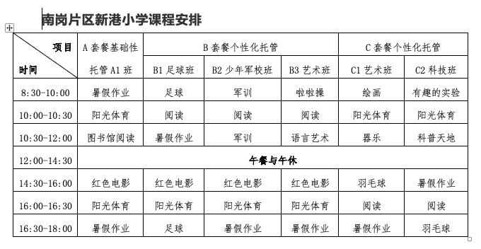 昨天(7月16日),广州黄埔区公布了暑假校内托管课程安排