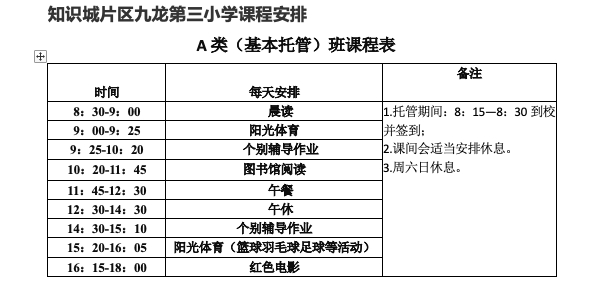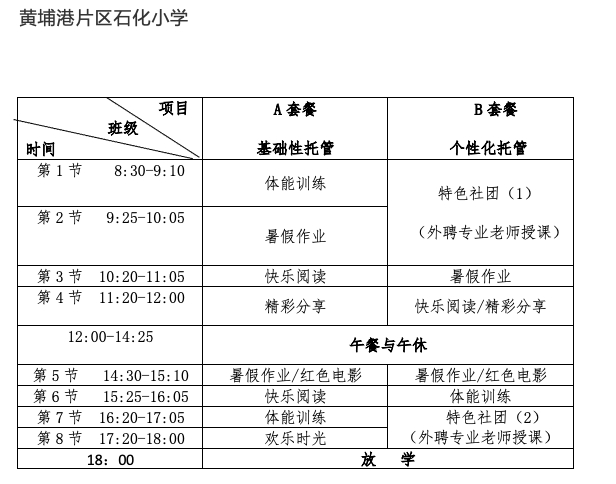 黄埔试点学校托管课程安排: