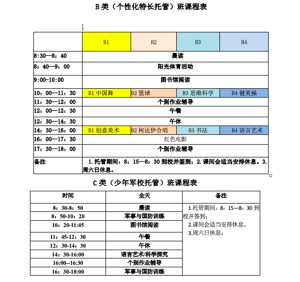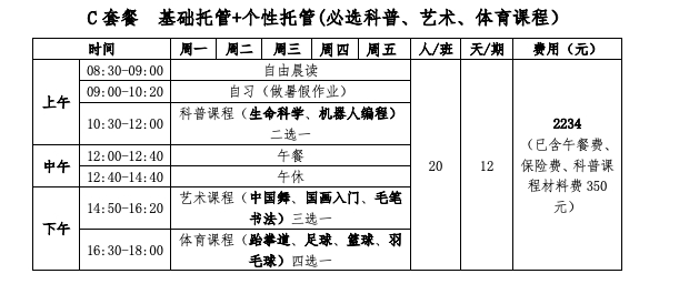 C套餐也是个性化托管,每班20人,东西校区各两个班。