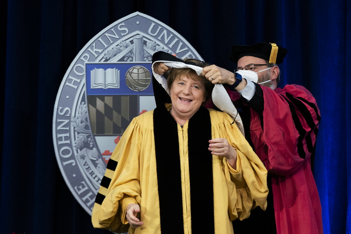德国总理默克尔“告别之旅”被约翰斯·霍普金斯大学授予荣誉博士头衔