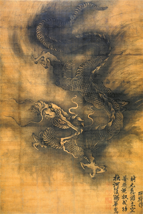 此画无年款,署名“所翁作”。作品绢本墨笔,以水墨大写意表现独龙于云雾中腾驾,气势非凡。画中笔随形写,墨由状走,浓淡结合,局部见细节,整体见气神。作者运笔控墨得心应手,恰到好处,将龙之精神体貌表现无遗。