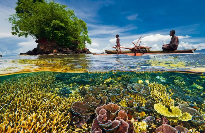 受到巴布亚新几内亚政府保护的浅水珊瑚礁,珊瑚在水底肆意绽放,不仅生物多样性得到了保护,这片区域也开发成旅游景观,为当地的渔民提供了赖以生存的资源。
