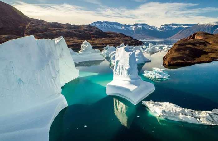 这些漂浮在格陵兰岛的冰山巨大瑰丽,但其实是从冰川上崩裂下来的浮冰,浮冰的融化导致海平面的快速上升。